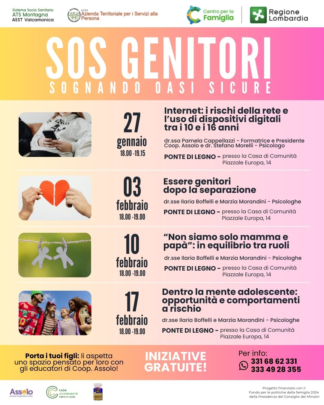 Un ciclo di quattro incontri rivolti ai genitori con le psicologhe Dr.sse Ilaria Boffelli e Marzia Morandini presso la casa di comunità di Ponte di Legno.