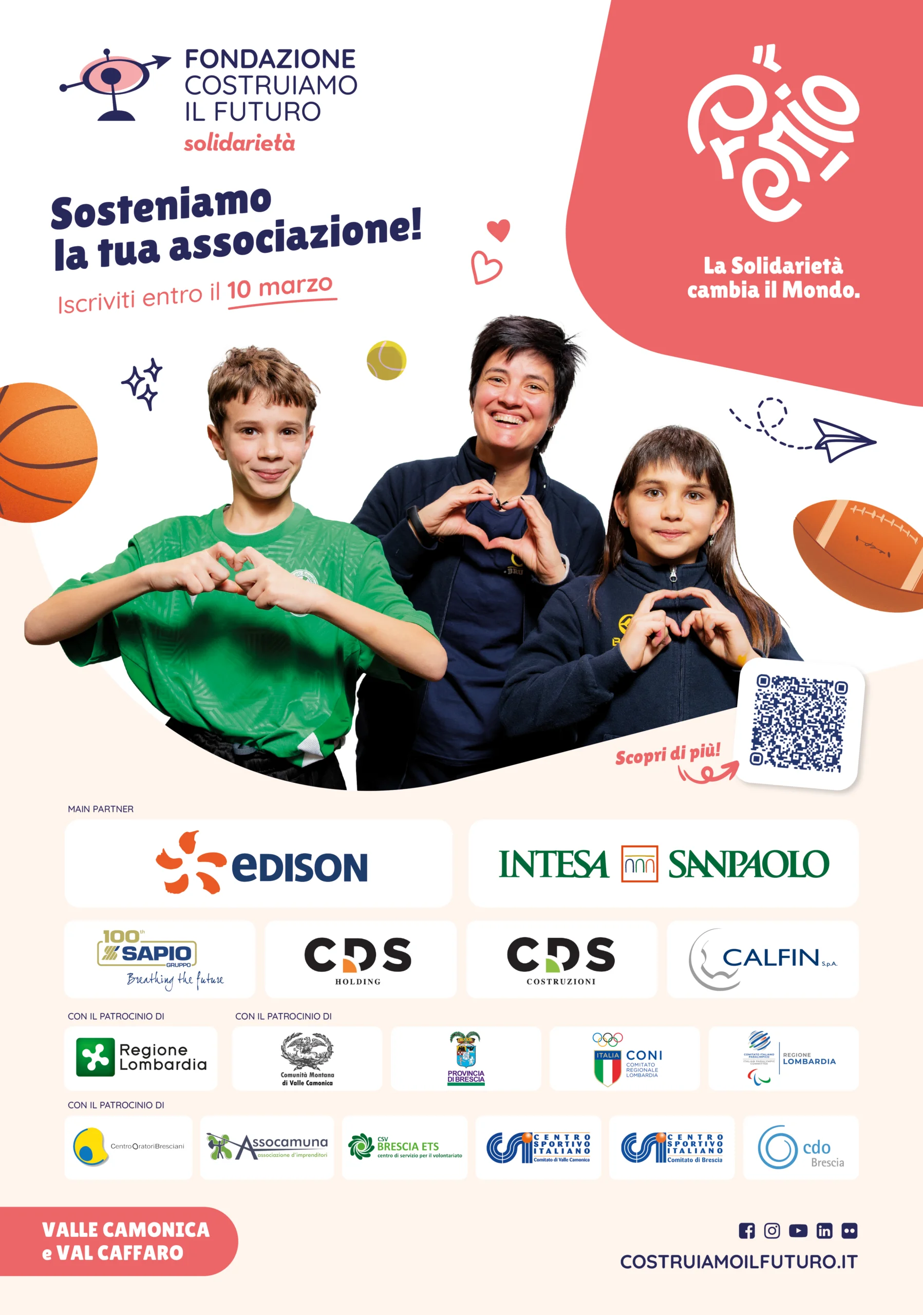 Il Premio Costruiamo il Futuro si rivolge alle piccole associazioni del territorio che operano in ambito sociale, sportivo, culturale e ambientale e alle società sportive dilettantistiche prettamente caratterizzate dal lavoro volontario, per premiarle con contributi in denaro fino a 5.000 euro o forniture di materiale tecnico sportivo.